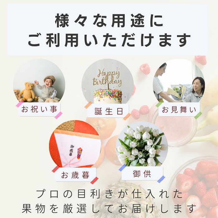 他の画像を見る 季節の恵みを、一箱に。彩り豊かな果実の贈り物。 フルーツ詰め合わせ《スタンダード》 送料込み eギフト対応 ¥ 4,000 税込 詳細を見る お気に入りに登録する 4.50 (レビュー:4件)