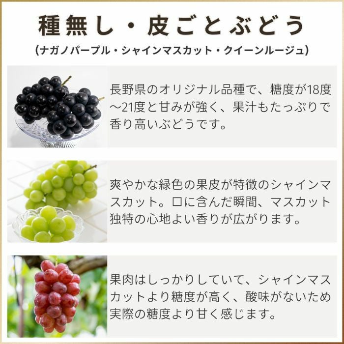 他の画像を見る 皮ごと!種なし!そのまま食べられるぶどう3種★1~2営業日以内に出荷いたします。 【食べ比べ】皮ごと種なし ぶどうの宝石箱 まもなく販売終了 種無し・皮ごと 送料込み 日時指定不可 クール便 参考価格 ¥ 9,480 →特別価格 ¥ 7,980 税込 販売を終了しました。 在庫切れ 詳細を見る お気に入りに登録する (レビュー:0件)