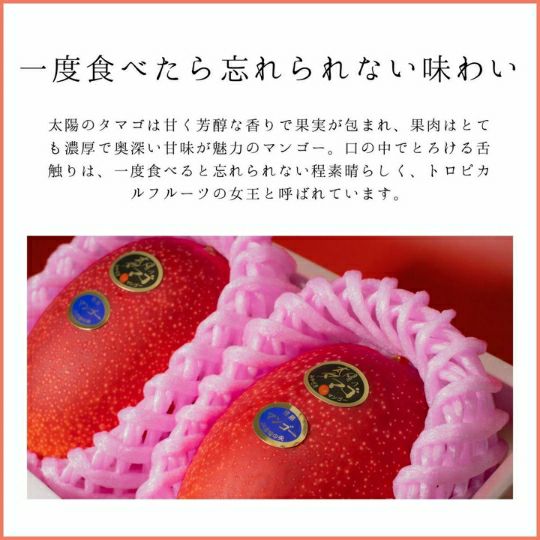 他の画像を見る 太陽の恵みが凝縮。とろけるような贅沢な味わい。5Lサイズをお届けします。 【超大玉】 宮崎県産 太陽のタマゴ 1玉入り 化粧箱 送料込み 日時指定不可 クール便 ¥ 13,980 税込 販売開始前です。 販売期間 2026/04/16 0:00 〜 2026/07/22 23:59 在庫切れ 詳細を見る お気に入りに登録する 5.00 (レビュー:1件)