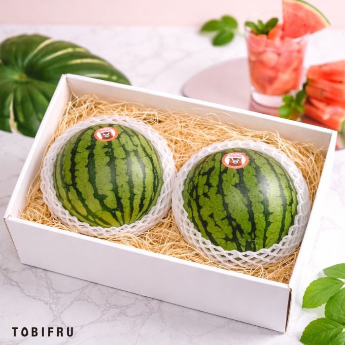 文字通り小さなすいかで、直径が平均20cm、重さは1.5~2㎏ほどのため、冷蔵庫でも保管できます。平均糖度は約12度と高く、皮も薄いため、可食部ギリギリまで甘さが続きます。