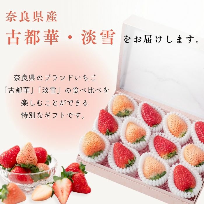他の画像を見る 奈良から届く、甘く華やかな紅白のしあわせ 奈良県産 紅白いちご 古都華 & 淡雪 各1パック入り 送料込み eギフト対応 クール便 参考価格 ¥ 8,900 →特別価格 ¥ 7,980 税込 販売期間 2025/12/01 0:00 〜 2026/05/06 23:05 レビュー件数:12件 詳細を見る お気に入りに登録する